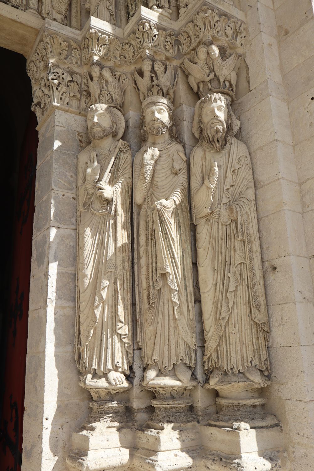 An deren Portal: Statuen aus dem Jahr 1160, frisch restauriert. Links