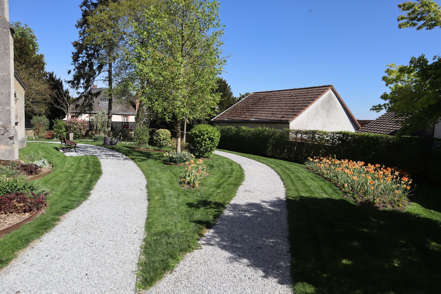 Sickerstreifen rund umd die Kirche besteht nicht aus Kieselsteinen, sondern aus Muscheln. In Ermangelung von Steinen hat